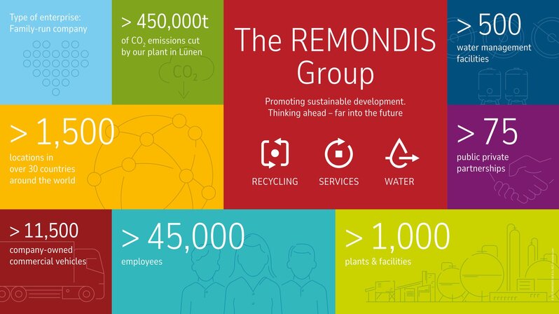 The Lippe Plant is not only one of the leading recycling centres, it is also the hub of REMONDIS’ world. It is home to the company’s head office which coordinates the REMONDIS Group’s activities all around the world. The Group can currently be found at around 1,500 locations in over 30 countries.